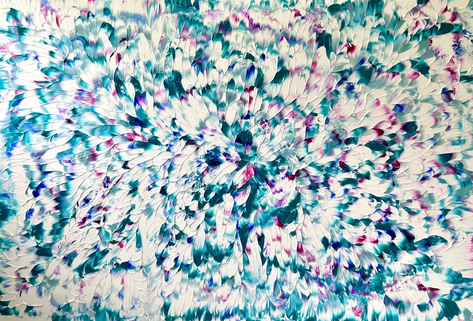 這次《質色的多重組構》個展展出了我的三種系列的全新創作,「經典系列」、「十年系列」,以及重新詮釋的「點點系列」,子晴認為疫情這幾年我們都受到很多影響, 而我也因為生活狀態的轉變,進而在創作之中產生了新的變化,也想透過這次個展,想表達人有不同面向, 創作亦是如此,透過這次個展可以在展覽中看到我展現儀式性、有沈靜、有綻放的不同層面,一起來參與這趟藝術旅程吧!