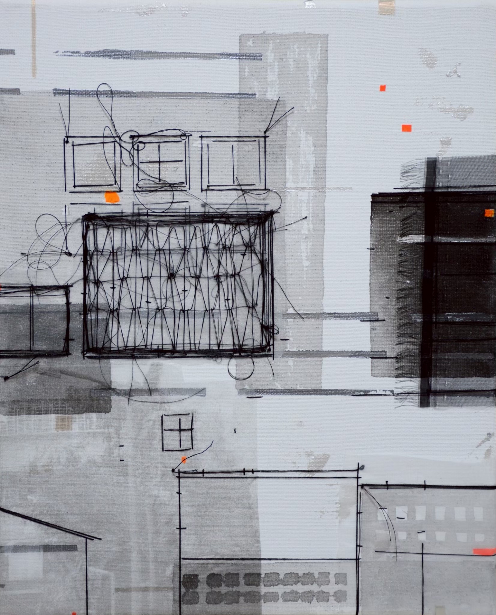 Chinese ink, acrylic, rayon, cotton on canvas